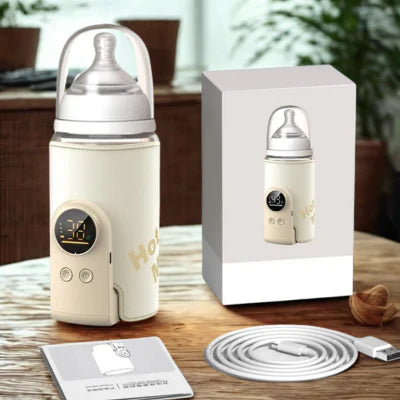 Crafted with high-quality, food-grade materials and a soft leather-like exterior, it offers both safety and style. The digital display lets you monitor the temperature in real-time, ensuring peace of mind with every feed.